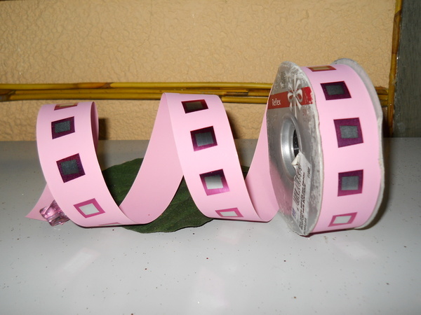 Nastro Reflex con decoro a quadrati metallizzati con bordo in tono per realizzare fiocchi dal grande movimento geometrico da inserire fra mimose e tulipani per ingentilirne i movimenti.