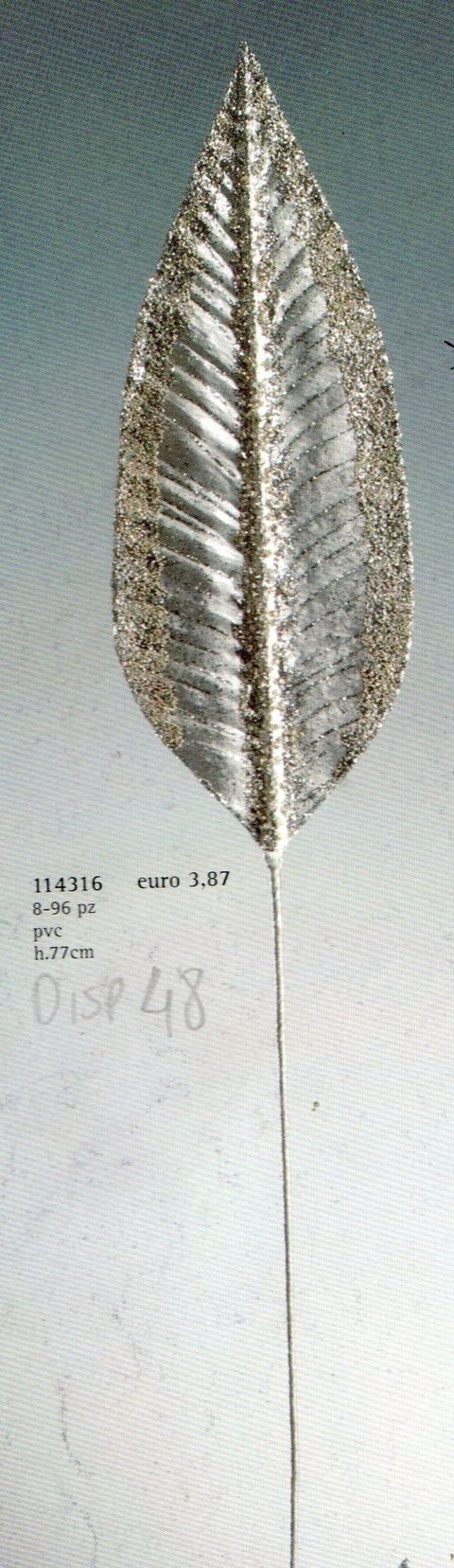 Foglia natalizia di banano artificiale decorata ai bordi con grosse scaglie di glitter. E' maestosa, luccicante di mille riflessi, animata, compatta, e resistente. Adatta ad essere usata nell'arte del comporre, sa presentare la sua maestosità inserita con movimenti morbidi in vasi anche di grandi dimensioni, raffinata e luccicante sa coesistere in ogni ambiente rallegrandolo con la sua presenza e come alito di opulenza saprà allietare il vostro Natale.