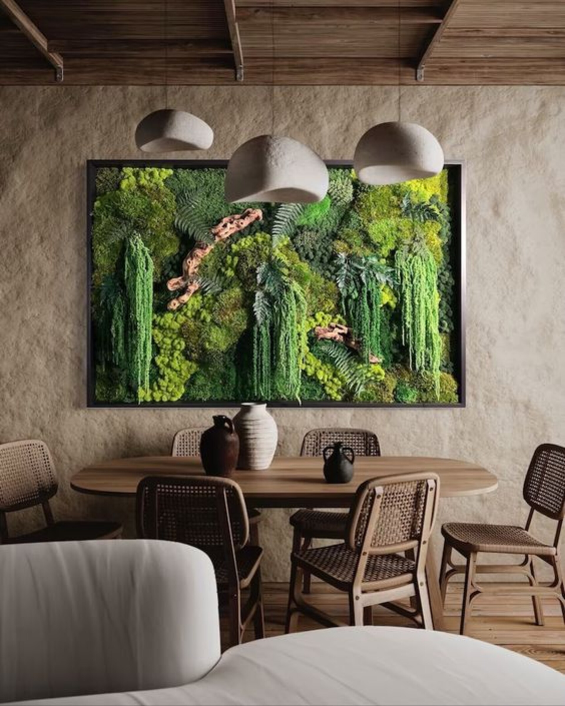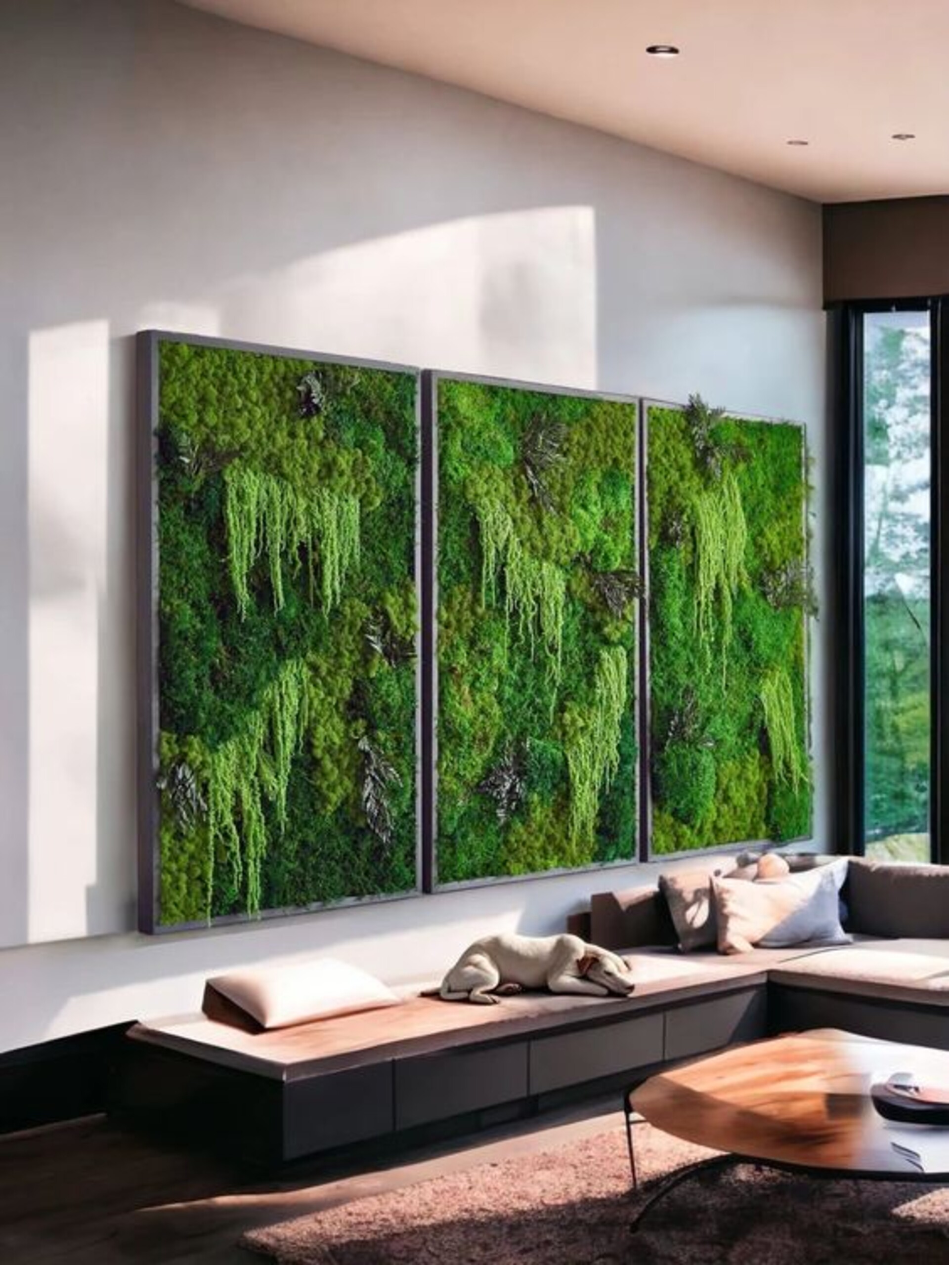 - Proprietà Fonoassorbenti: Il muschio stabilizzato e il fogliame contribuiscono a ridurre il riverbero e a migliorare il comfort acustico degli spazi.