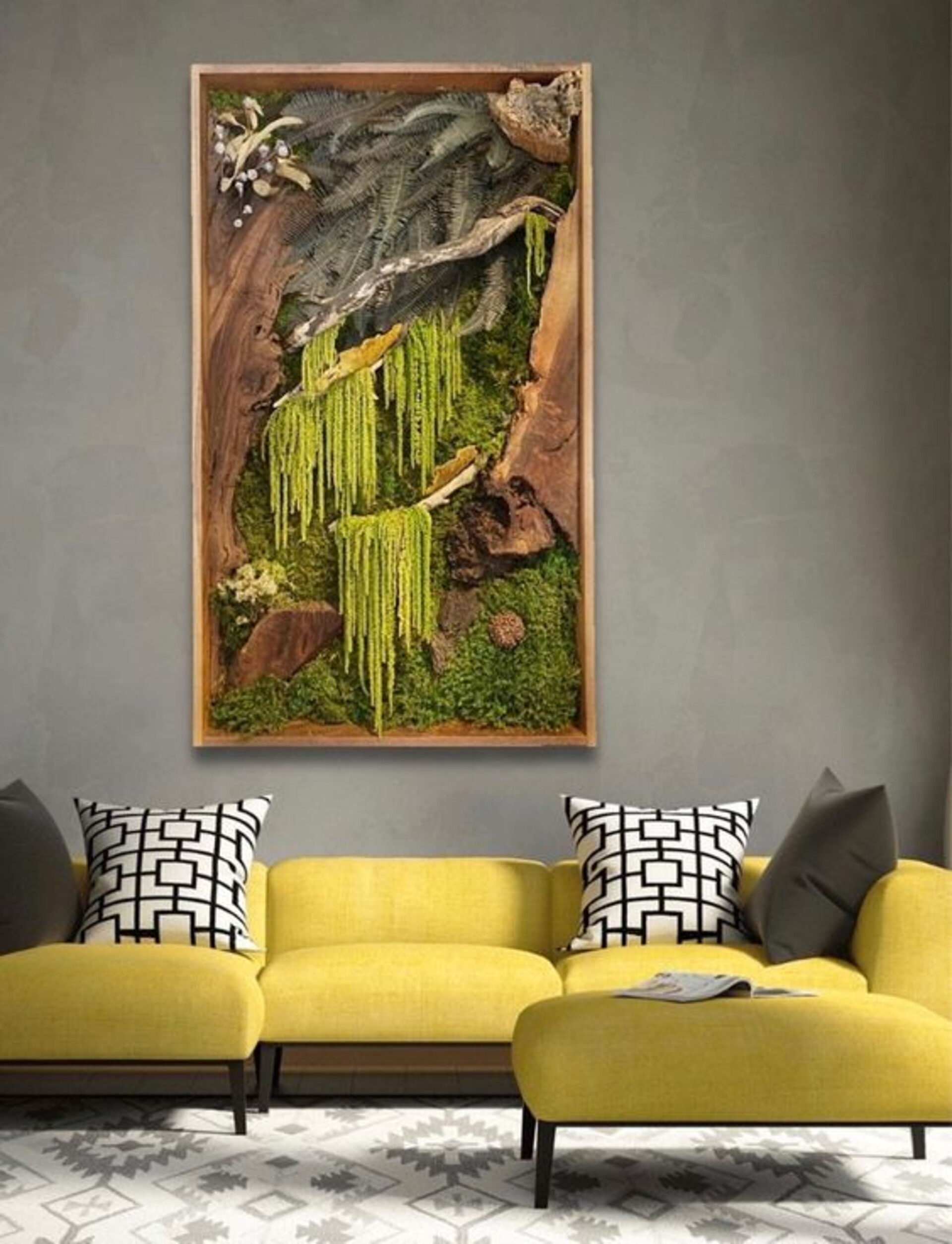 - Design Biofilico Su Misura: Progettiamo ogni composizione in base alle tue esigenze, creando scenografie uniche che migliorano il benessere e l'estetica del tuo ambiente.