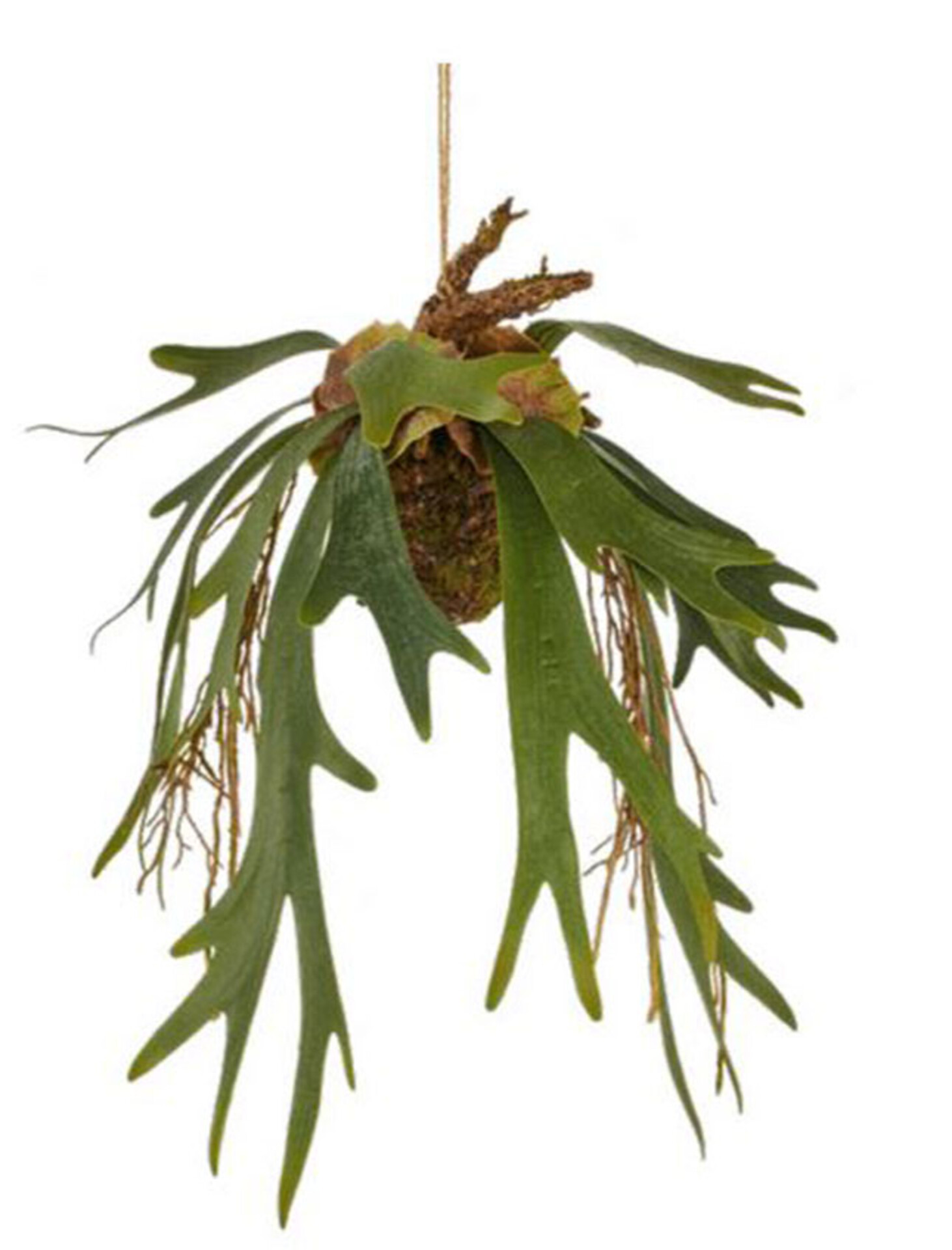 Platicerium Bifurcatum, conosciuta col temine comune di "Corna d'Alce" per la sua tipica forma che ricorda le corna del cervo, Platicerium é una felce di provenienza tropicale tipica della Nuova Zelanda e dell' Australia, le foglie (fronda nella teminologia delle felci) sono larghe e ricoperte di peluria che riverberano un colore verde chiaro satinato, la fronda é di diverse misure e sono animate per poter dare il movimento adatto allo spazio dove viene inserita la pianta, solitamente la fronda ha un sistemazione orizzontale o cadente visto che in natura cresce sugli alberi in alto. Inserita in ambiente quotidiano offrirà il tono tropicale che lo caratterizza, adatto come pendente da muro, inserito in vasi appesi da cui trasbordare o a bordo fiorera in composizioni di verdi diversi che vogliono rappresentare un angolo di natura e per molto altro ancora.