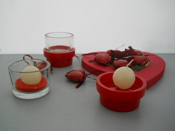 Porta tea light in vetro con base in ceramica rossa per contenerlo, divisi sono entrambi utilizzabili, ad esempio come poggia candela il sostegno rosso in ceramica e quello in vetro per inserivi un bocciolo di rosa accanto alla candelina accesa.La confezione contiene 4 ceramiche rosse alte cm. 3,5 x 7 + 4 vasetti in vetro alti cm. 3,5 x 6.