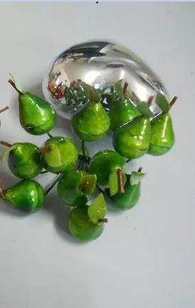 Mazzolino di 12 mini pere e mini mele lucide e steccate che permettono d'essere inserite in decorazioni di ogni tipo, dalla bomboniera alla composizione floreale al complemento decorativo con motivo natalizio, pasquale, elemento di facile utilizzo anche per decorare cappelli, borse, fermagli per capelli o per accompagnare guarnizioni di abiti da scena e tanto altro ancora.